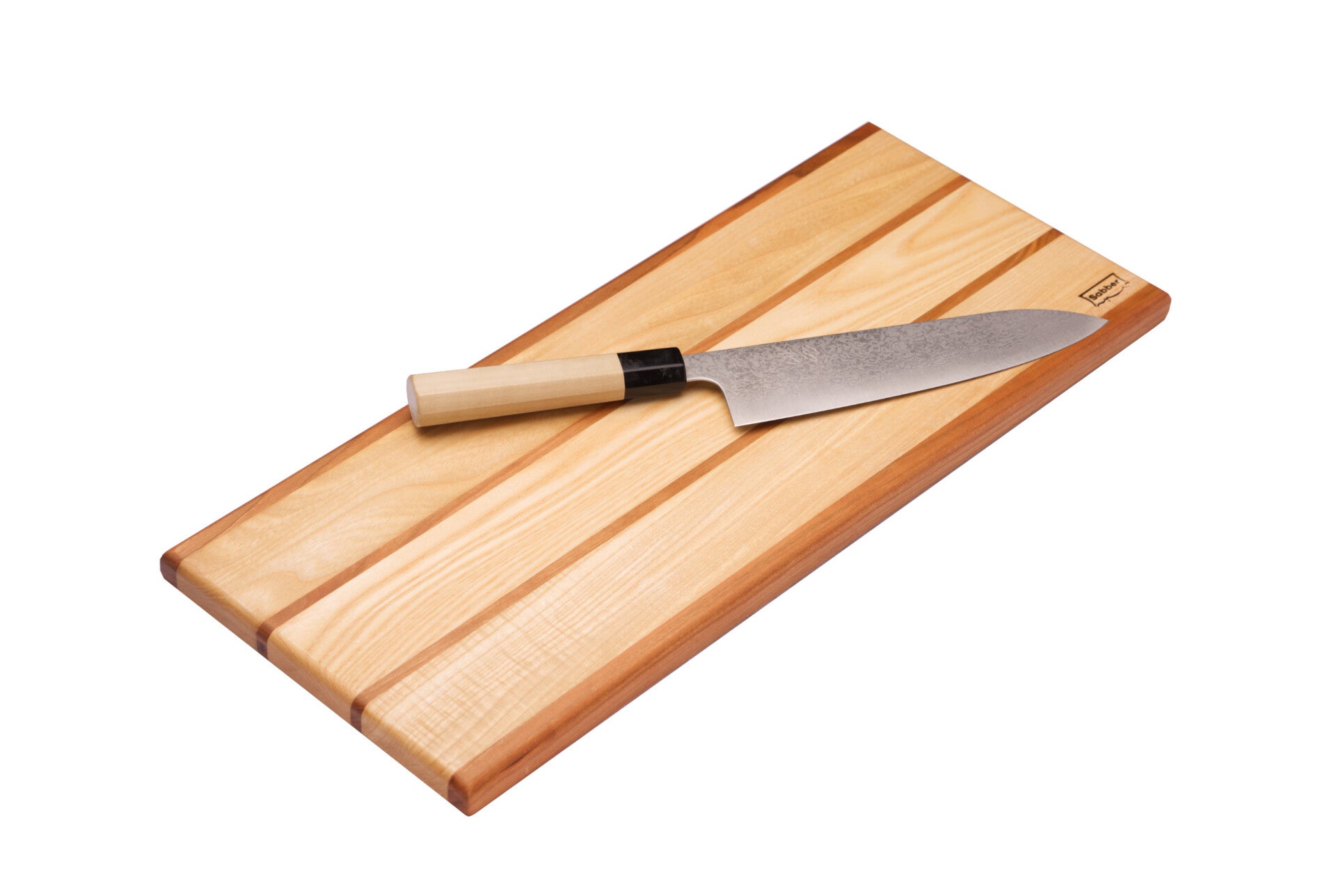 Snijplank van Essenhout met stroken van Kersenhout.